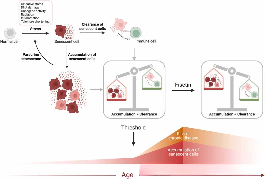 非瑟酮是目前已知清除衰老细胞能力强的植物源性成分之一。实验表明,间歇性补充500 mg/kg非瑟酮,可有效清除早衰小鼠体内的衰老细胞,将其寿命延长约10%。